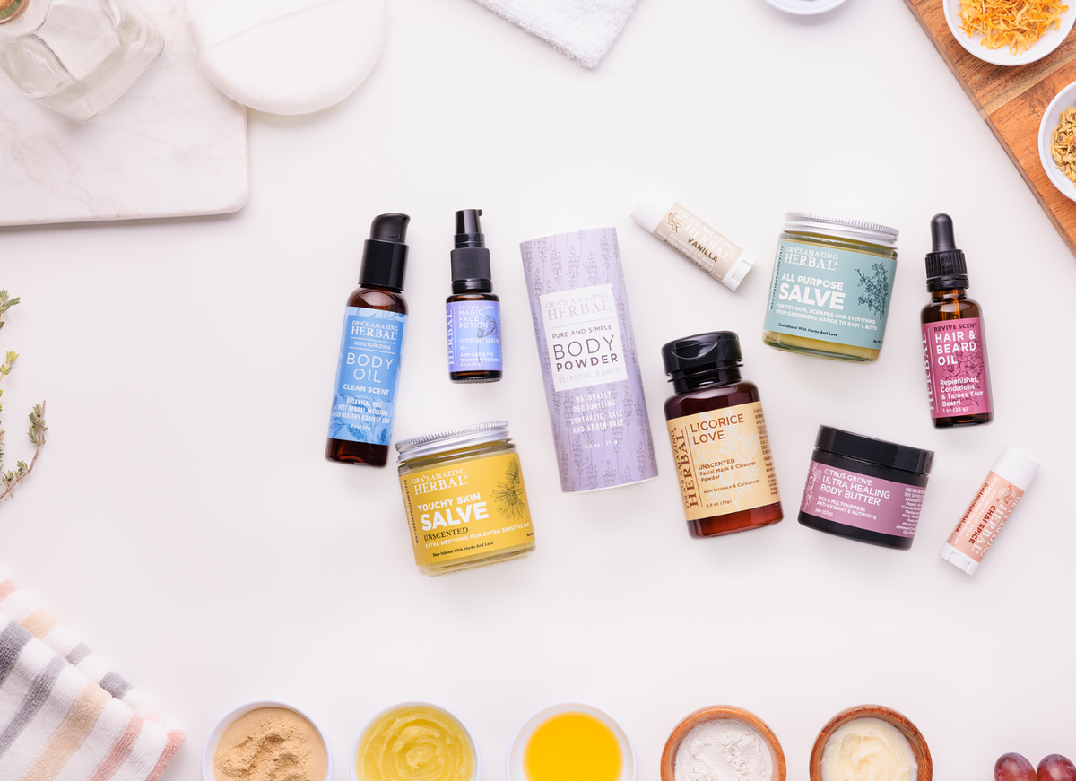 In the ways of healers of old, we slowly cold infuse oil with soothing and healing orgainic herbs for use in all of our oil based products. We start with pure, non-GMO, Italian grapeseed oil and then add organic Calendula, Comfrey, Plantain, St. John's Wort, Burdock and Thyme. We allow the infusion to gently age, protected from heat and light in non-plastic containers, for a minimum of 6 weeks. This extracts the healing components and phytonutrients of the herbs into the oil for use. We then use this as our Base Oil for our balms, salves, serums, butters, and oils. No wonder our products are so Amazing! Amazing Herbs, Amazing Skin.