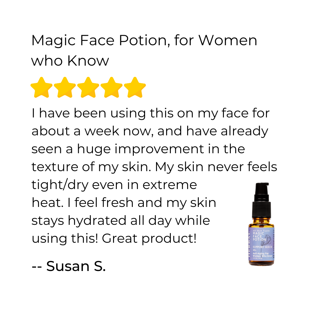 After cleansing with one of our Face Care Powders, place 5-10 drops onto fingertips and massage together. Gently press oil onto clean and still moist face and neck. If applying to dry skin, mix with a few drops of pure or herbal water from Take a Breather steam in the palm of your hand before applying. If your skin is extra thirsty, use a little more. Listen to your skin, it will tell you how much it needs.